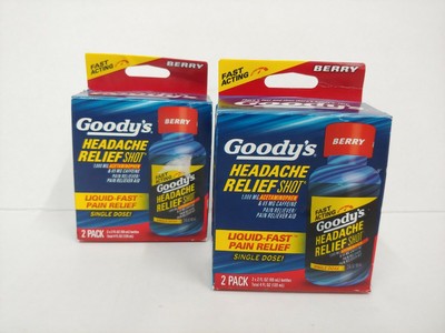 Goody's Headache Relief Shots | Berry Flavor | 2 Shots | 2 oz per Shot ... Goody's Headache Relief Shot provides speedy relief in a great tasting, convenient form with fast liquid action. Goody's understands that you can't afford to let pain slow you down. That's why those who really know speed have trusted Goody's for generations. Since 1977, Goody's has had a strong partnership with NASCAR and its drivers.