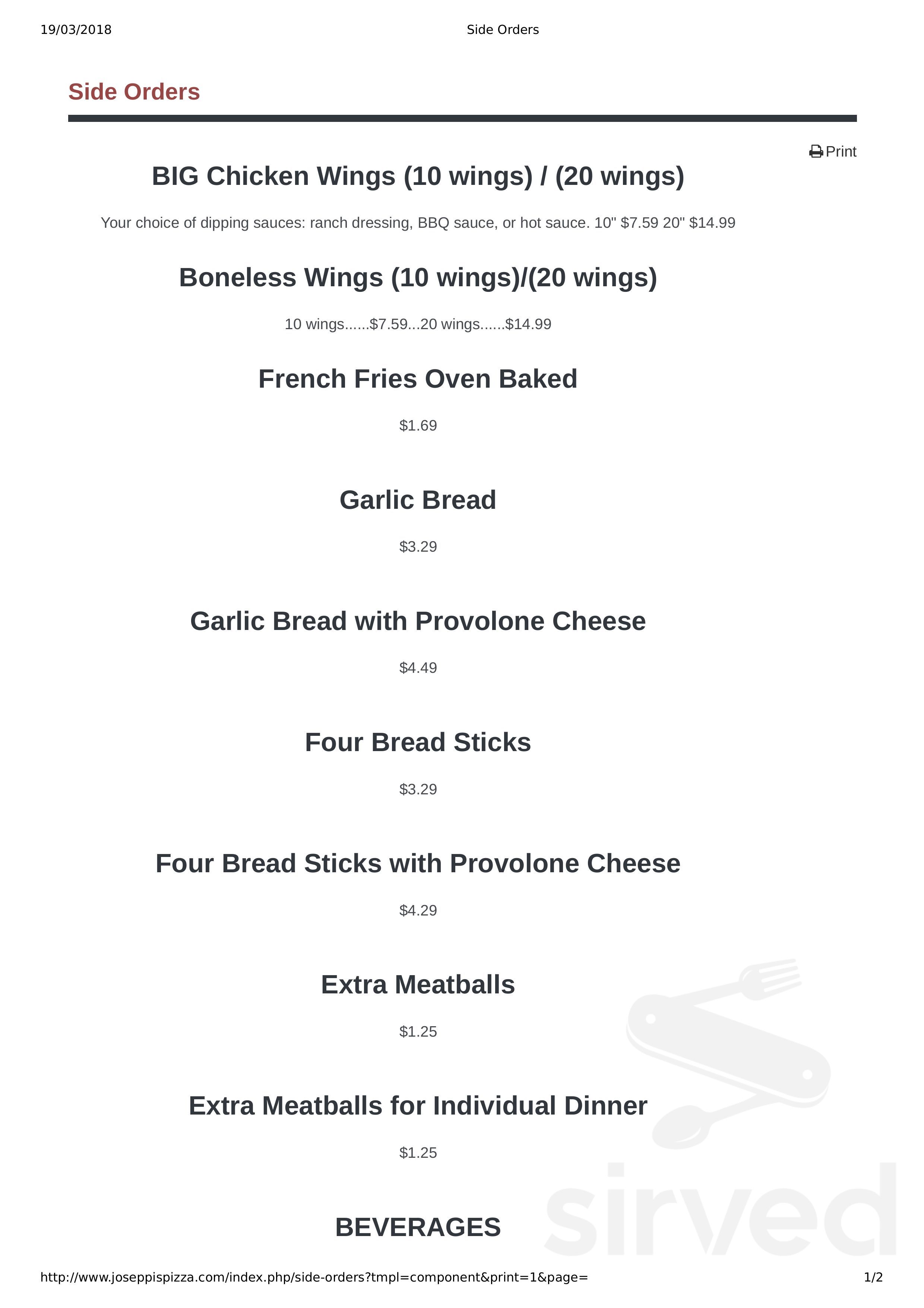 Menu | Joseppi's Pizza Join Our Mailing List For Coupons! Subscribe Now